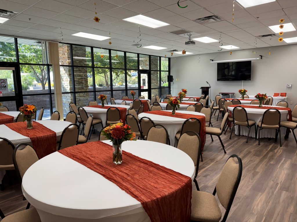 Ideal for board meetings, seminars, classes, and small group gatherings. Our meeting and community rooms offer a professional, comfortable setting with tables, chairs, and ample parking.
